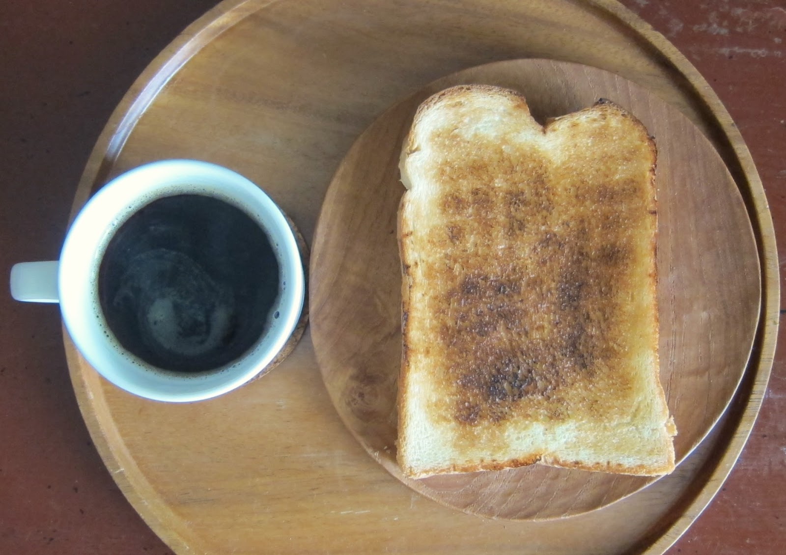 昨日買っておいたパンなので、パリッとさせようと魚焼きグリルに入れてみたけど、高さがあるパンは炎がスレスレのところにくるのでうまくいかないことがわかった。やる前に気づかなかったことに我ながら驚いた。